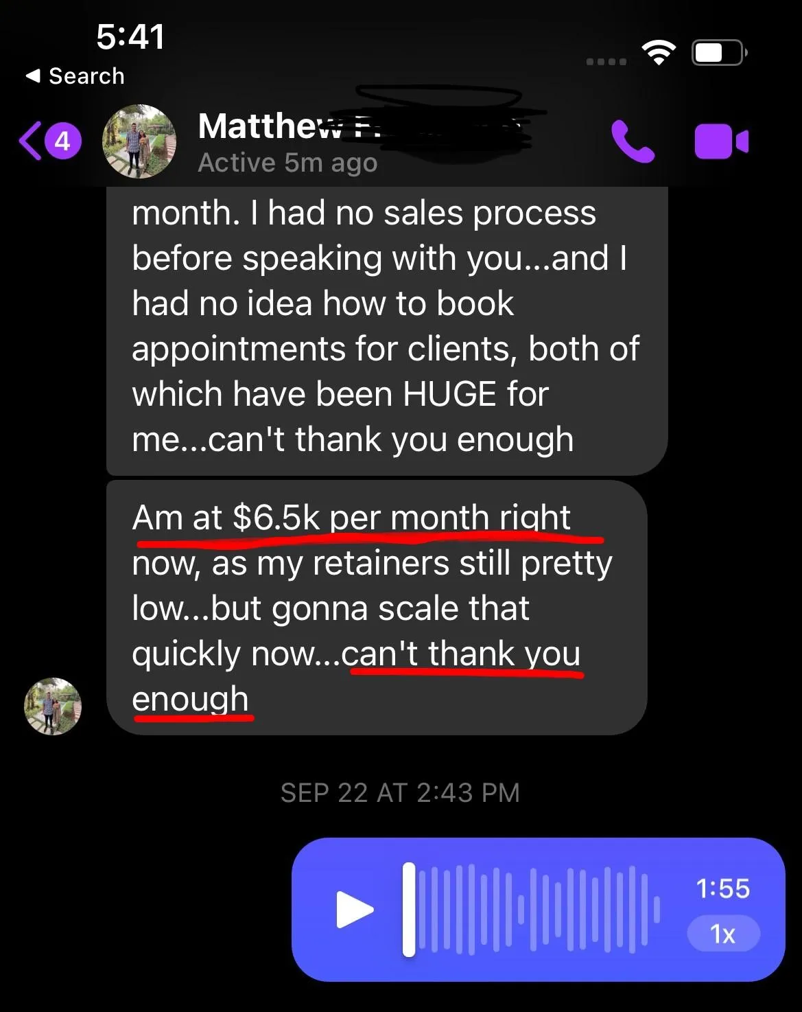 "In the first 2 weeks I got 15 clients... I grew to $15,000/month & I am living my dream life traveling running an automated business while taking care of my family"